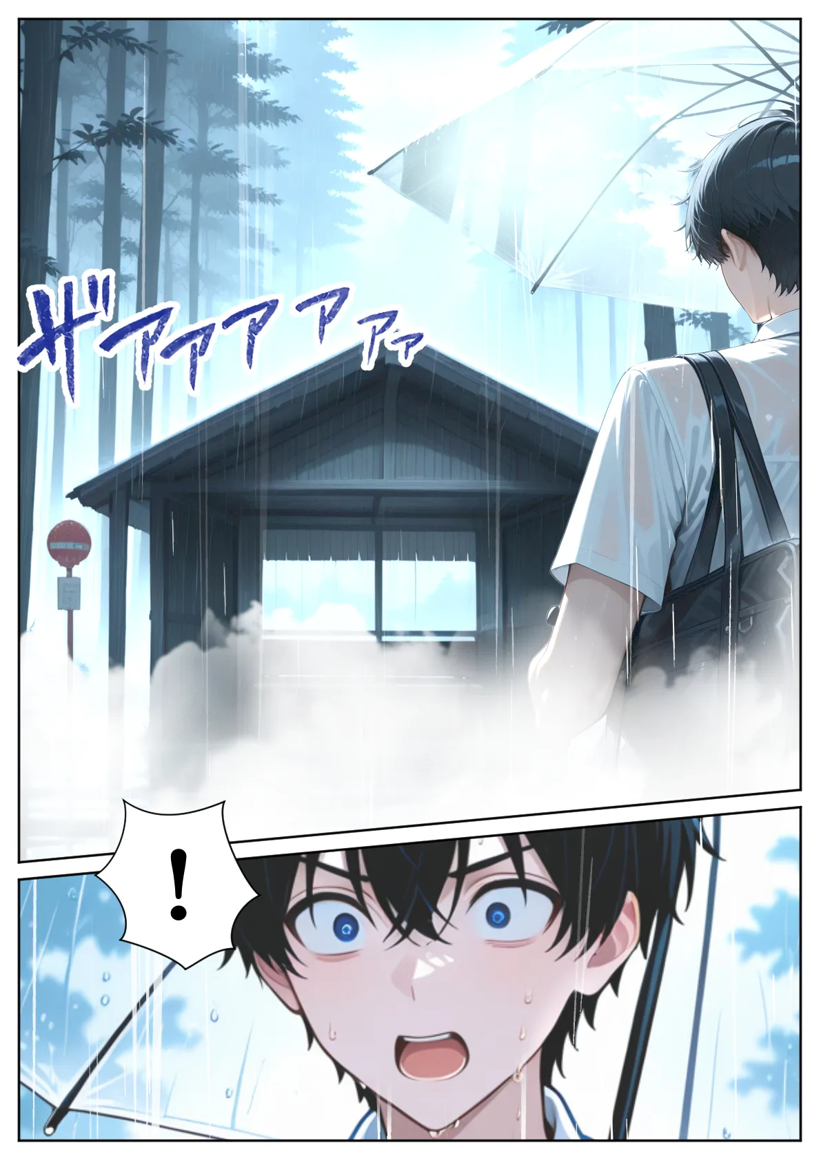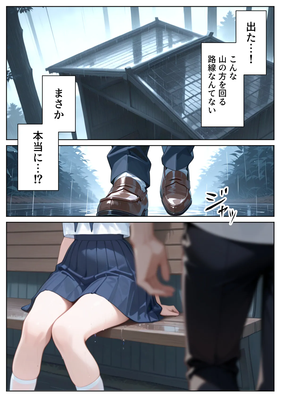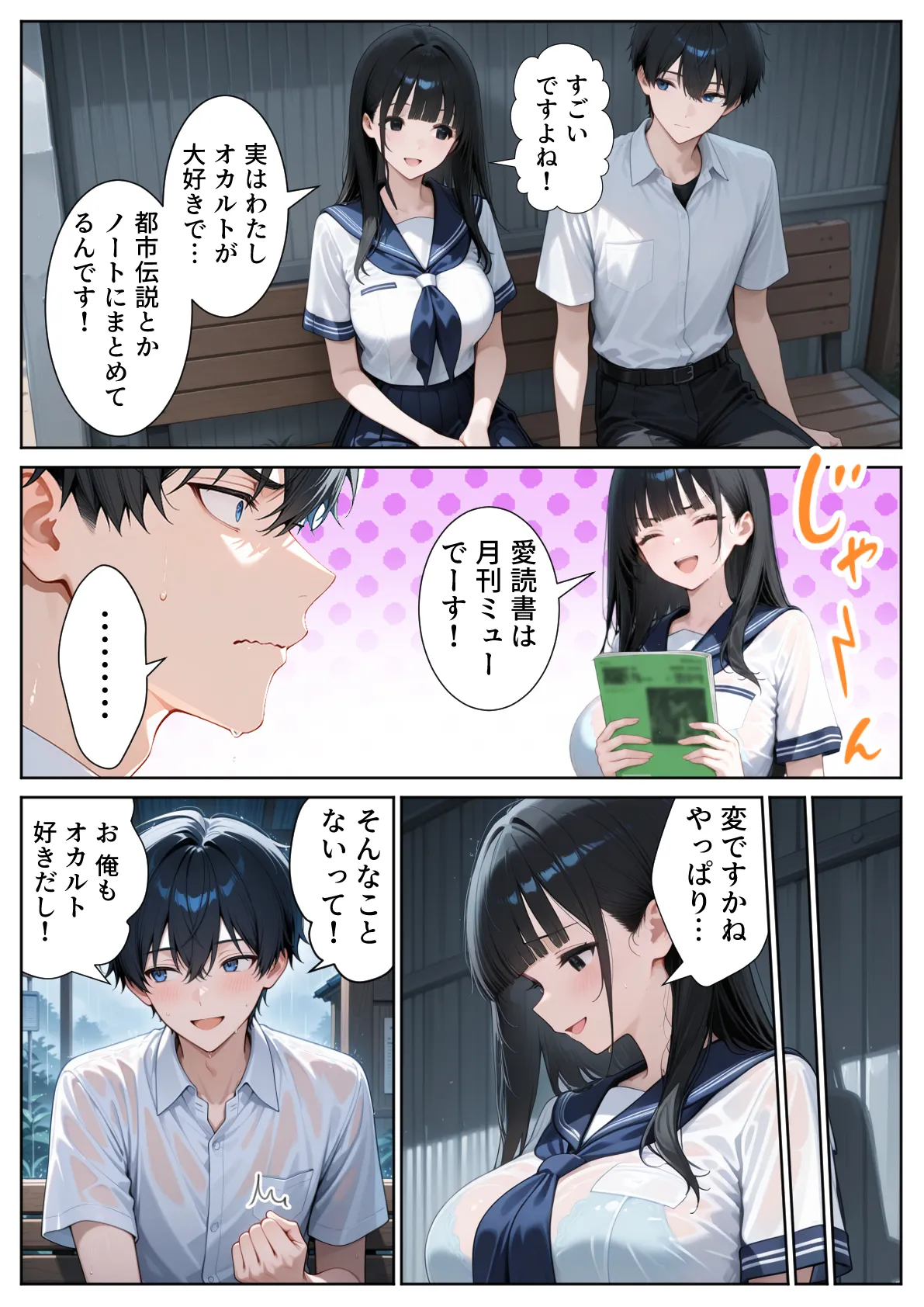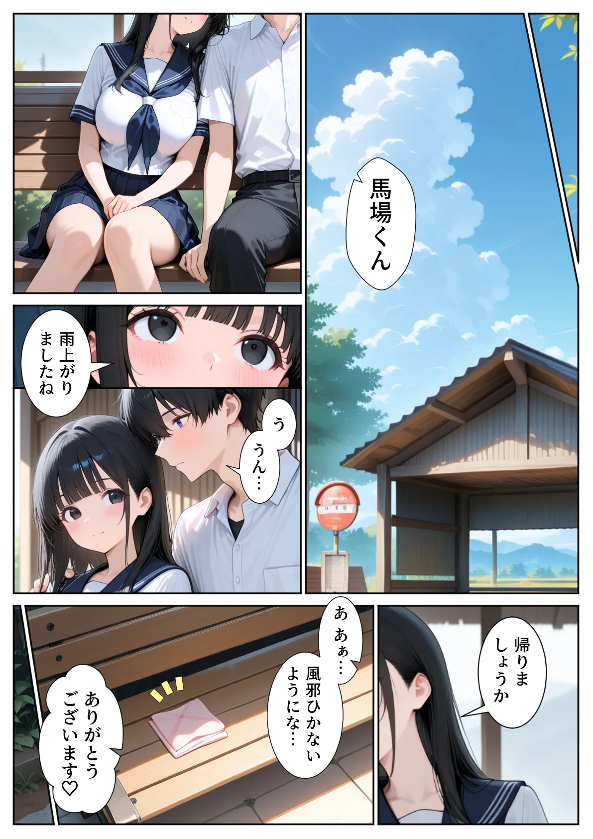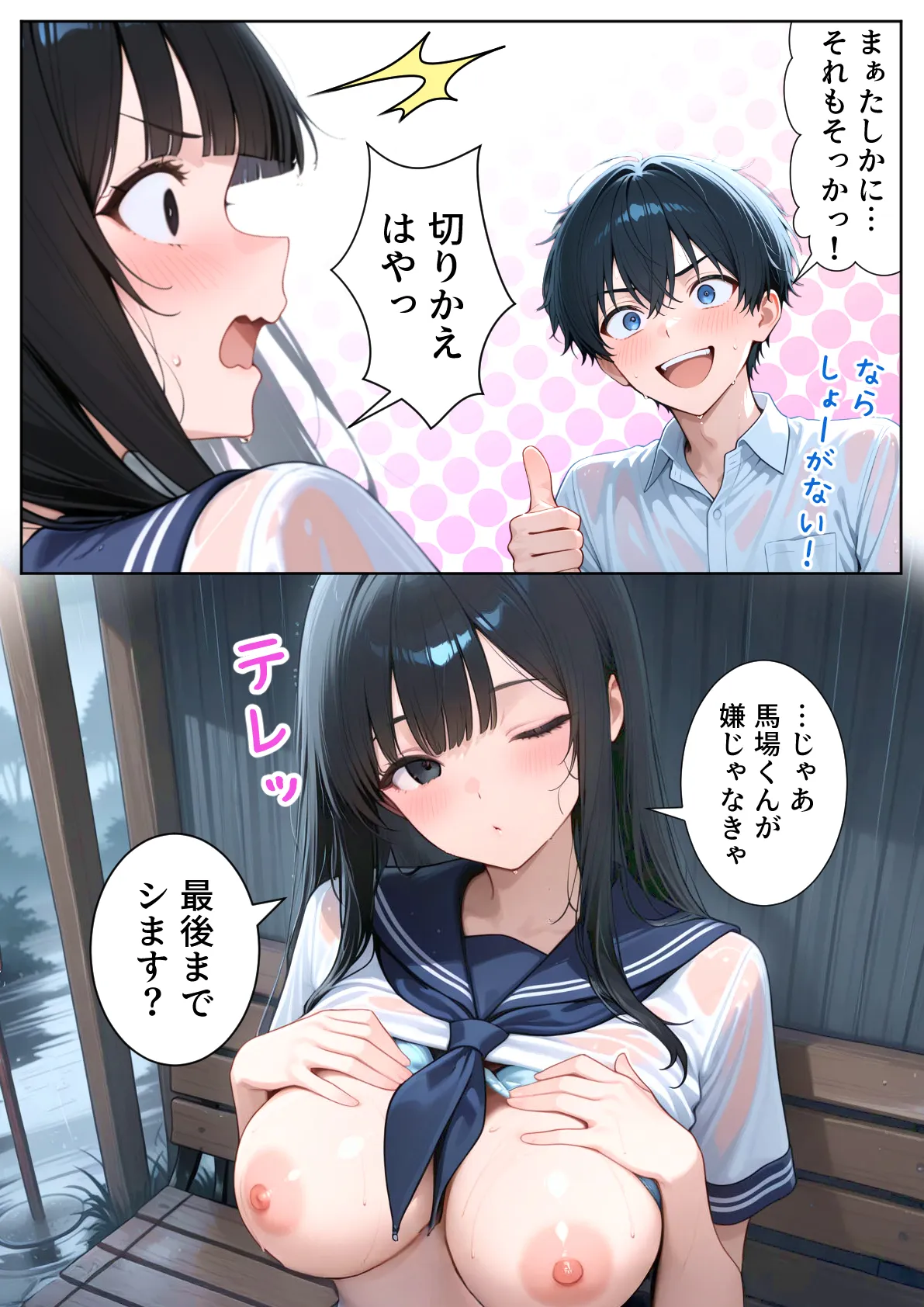 [ぱにぱに] 雨宿りのバス停で学園美女と濡れ透けSEXした話