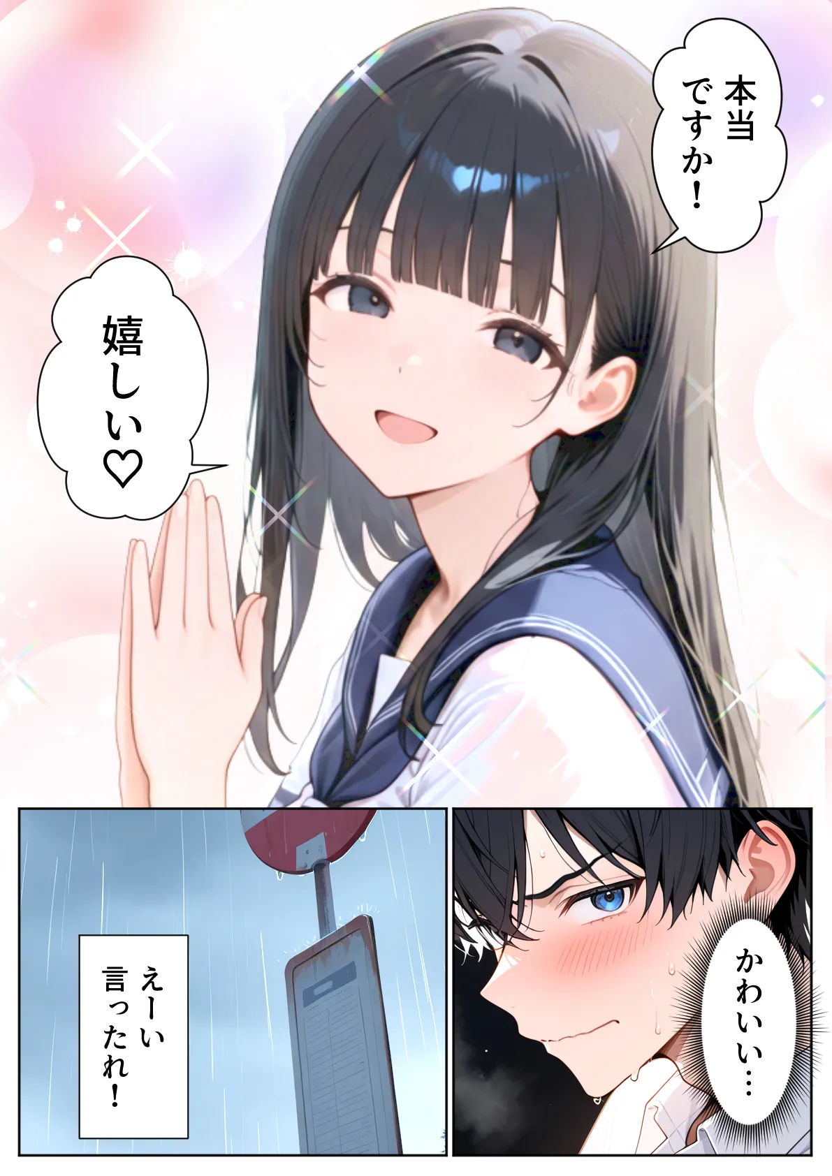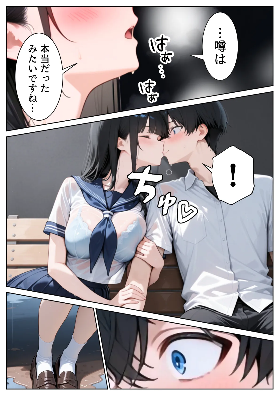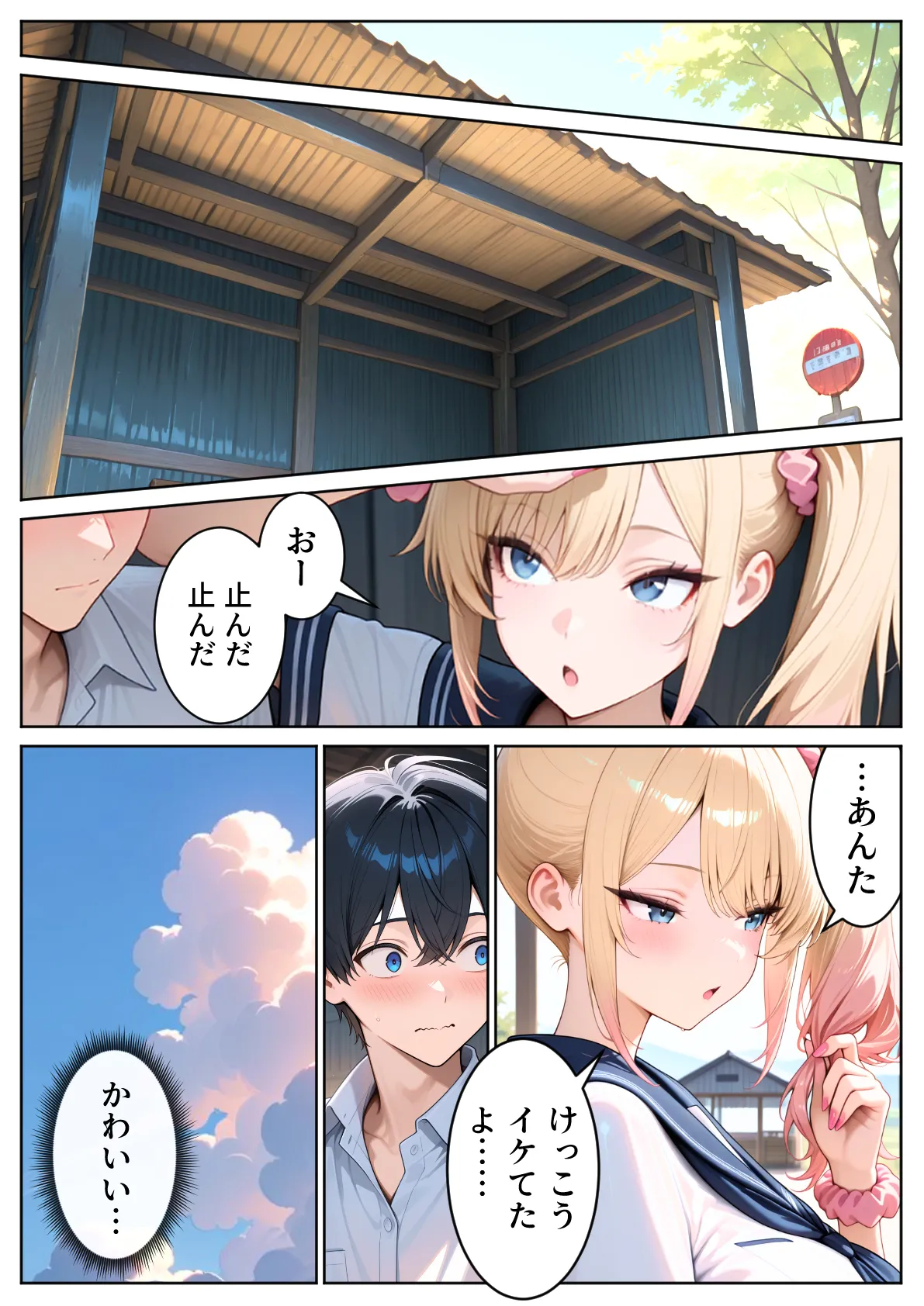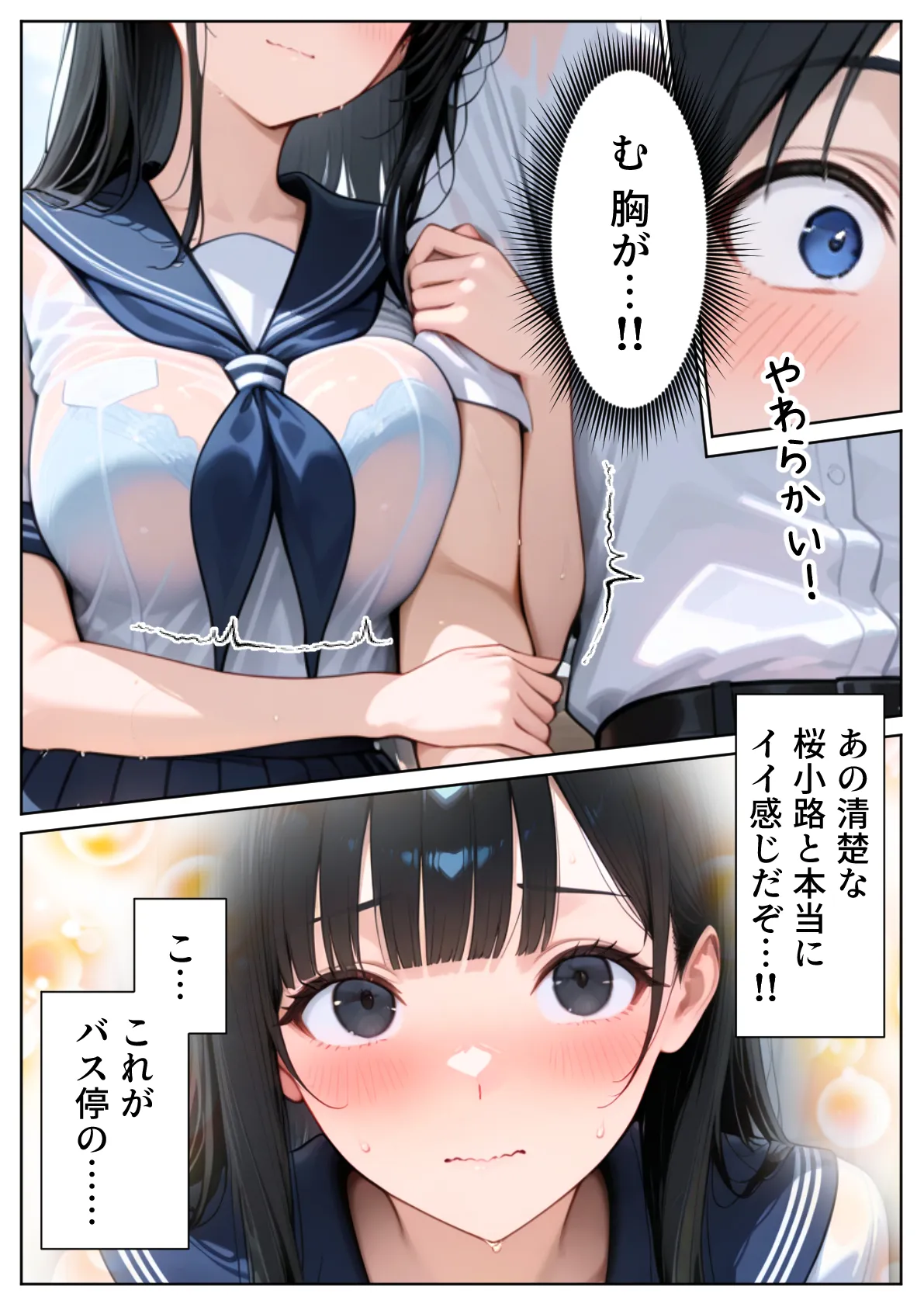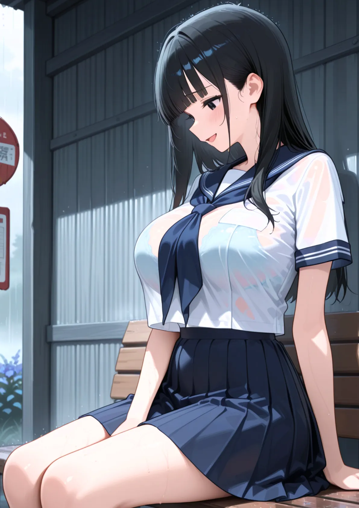 [ぱにぱに] 雨宿りのバス停で学園美女と濡れ透けSEXした話