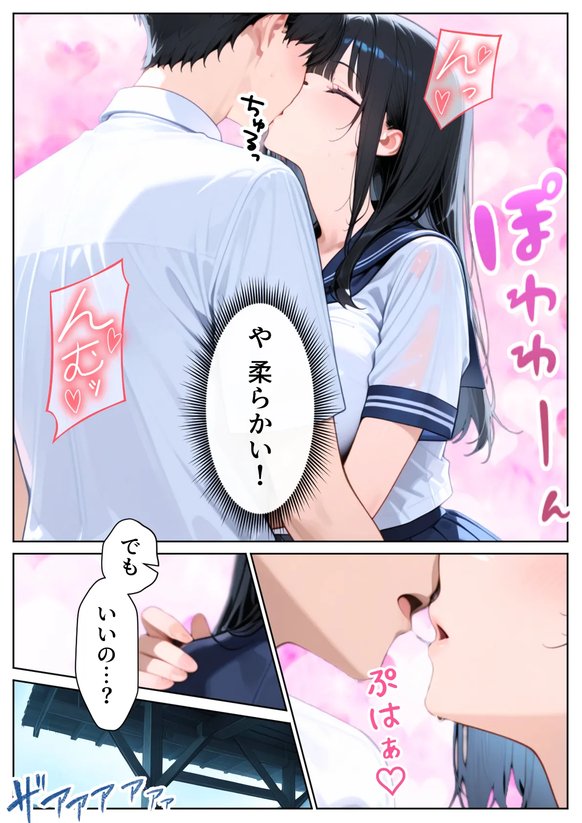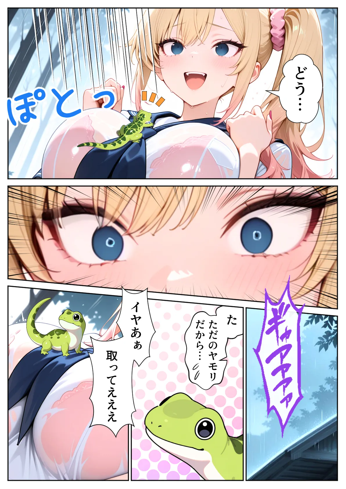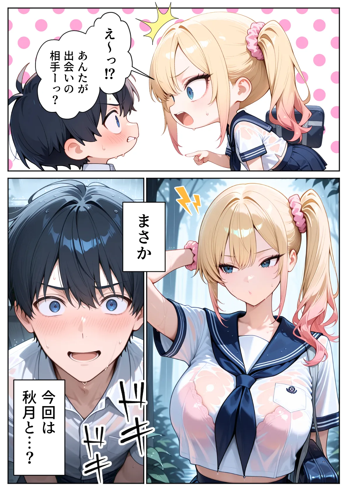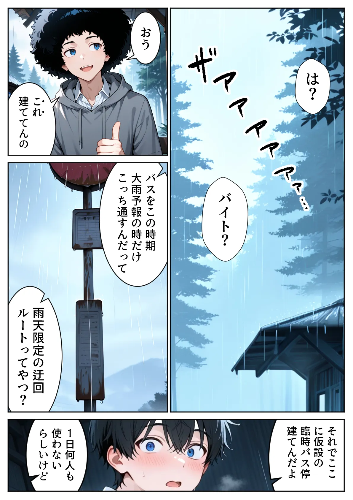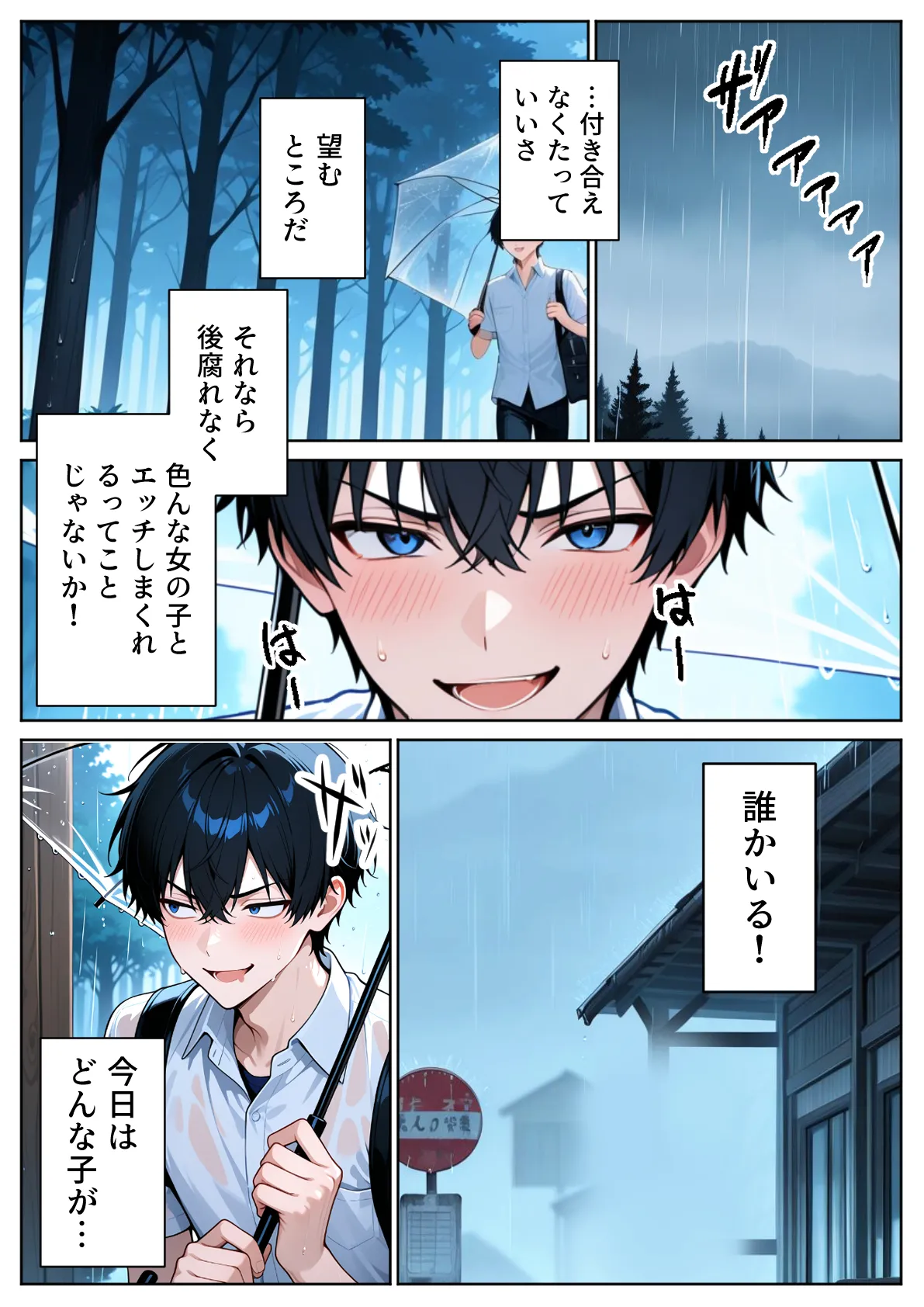 [ぱにぱに] 雨宿りのバス停で学園美女と濡れ透けSEXした話